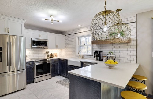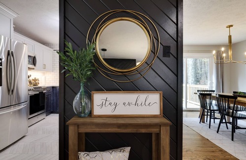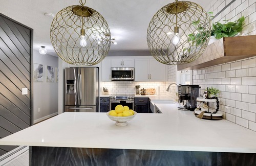 The kitchen and darker tones contract the rest of the home while offering working areas with spacious countertops and state-of-the-art cooking amenities. Grab some fresh ingredients and prepare delicious homemade meals for the whole group.