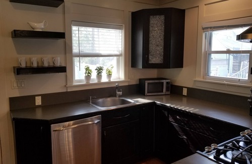 Walk to all the restaurants, nightlife, and shopping when you book the best kept secret in the city! Very quiet and serene location but only a few minutes walk to everything downtown Royal Oak has to offer! Park on the private driveway that can fit up to 4 cars. Then enter the front door with a code given prior. Once inside you will have access to the 250 square foot living/dining area with connecting 100 square foot full kitchen complete with all cooking essentials. The hallway leads to the full bathroom, and two small bedrooms each with closet. Step outside the back door onto the deck with surrounding fully fenced mature garden and private hot tub! oven is inop but gas burners work great!