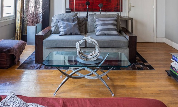 Comfortable and stylish one bedroom apartment plus double sofa bed in living room with modern amenities in the heart of Paris with elevator, A/C, high ceilings, great views on the street life of the historic area of Saint Germain des Prés . We are surrounded by upscale restaurants, cafes, shopping, art galleries and walking distance to all museums, etc.