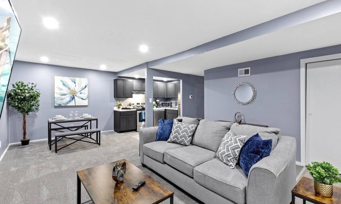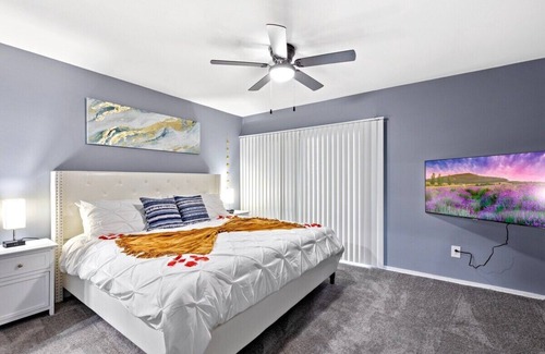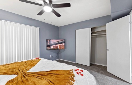 Why not take the comfort level up a notch and slip into the cozy ambience of the living room, complete with a cushy sofa, a fuzzy carpet and an enormous 55-inch 4K HDTV! All your favorite streaming services including HBO Max, Netflix, Disney +, Amazon Prime and more are available for your entertainment. Need some quality rest and relaxation? No problem! Each bedroom has abundant space for you to store your belongings, as well as a comfortable King/Queen-sized mattress with hotel-quality linens & pillows designed for maximum comfort. Additionally, benefit from using our bedside nightstand complete with a reading lamp to facilitate an ideal reading set up. After a day of adventure, wash off in a nice bubbly bath or hot shower in one our sparkling bathroom, fully equipped with towels and toiletries for your convenience.