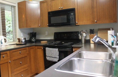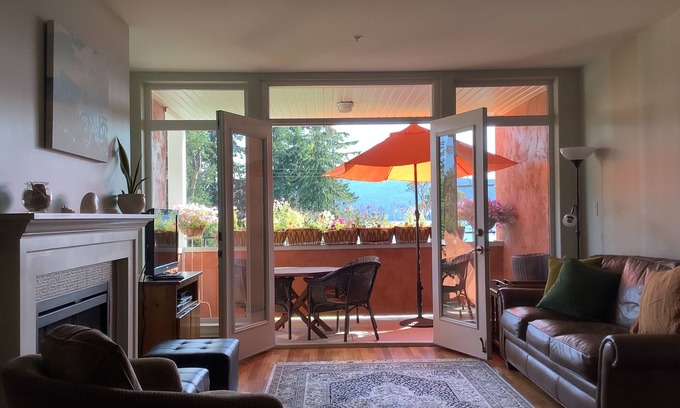 Whether you come alone or with your partner or in the group of 4 - you will feel comfortable in this spacious and unique place. 2 queen beds with Egyptian cotton sheets and hypoallergenic duvets; extra twin bed with memory foam mattress is available upon request. Rain shower. Rogers Cable TV & DVD collection, wall-mount Smart TV with Netflix. Fireplace. Well-stocked kitchen, BBQ grill, parking for 1 large or 2 small cars. Walking distance to the warmest ocean beach & Crofton ferry terminal. Good bus connection to other parts of the island. After a day of exploring the island, have a fantastic feast and enjoy fabulous sunsets from the private patio balcony. Breathe the aroma of arbutus trees, rosemary, flowers and RELAX..