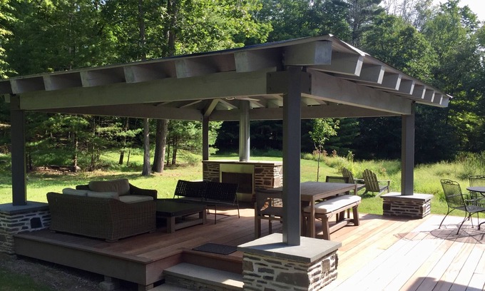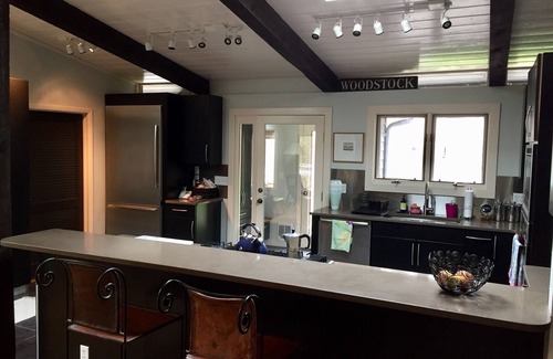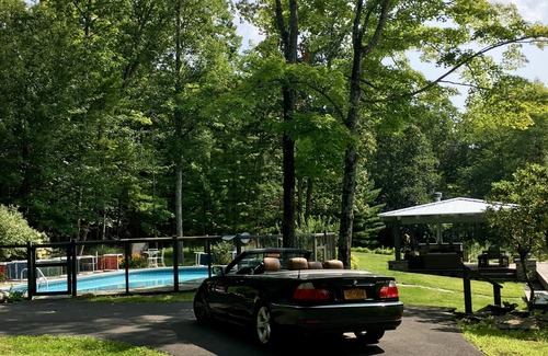 Picture yourself in an Arts-and-Crafts-style home, on 3.3 acres, just a short walk from Woodstock’s Village Green. We've owned it since 2002 and listed it on VRBO in 2019 for the first time. Your getaway begins in this Woodstock Festival-era 3-bedroom, 2-bath home offering many truly unique qualities. Relax by the heated pool (during the warm months), surrounded by mature trees. Enjoy the “weather-resistant” outdoor room: a spectacular, covered deck featuring a full fireplace. Watch the meandering stream that flows past the yard. Stretch out on one of the sofas in the one-of-a-kind, stone living room. You’ll be transported: We’re just 100 miles—a two-hour drive—from NYC.