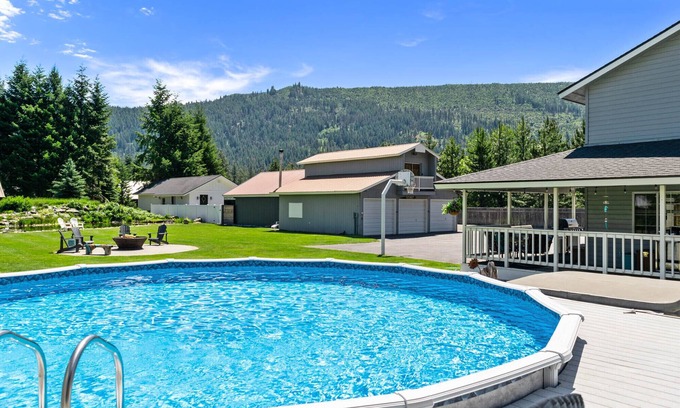 Permit #000120.Welcome to Icicle Oasis! Your home away from home with all the amenities of a resort. Close to cross country skiing and snowmobiling. Only 35 minutes to Stevens pass for downhill skiing and 51 minutes to Mission Ridge. Only two miles to town. Boasting an acre of land with an above ground pool ( heated May to late September )hot tub, basketball hoop, fire pit. We also have a large pond in the back yard. Close enough to town to enjoy all Leavenworth has to offer but far enough away to escape the hustle and bustle while relaxing on the porch with stunning views of Sleeping Lady Mountain. The two-story home with beautiful wrap around porch includes four (4) bedrooms upstairs, two and a half (2.5) bathrooms, and two gathering areas downstairs next to the kitchen and dining room. Two bedrooms include a king bed, one bedroom has a queen bed, and one with two twin beds making it perfect for many combinations of families or couples. Dogs allowed (with fee) with an additional bonus of a connected fenced enclosure with doggy-door access off the mud room. Icicle Oasis located in the heart of the Icicle Valley is less than a mile from Icicle Ridge hiking trail, close to many more hiking trails further up Icicle Canyon. The Bavarian Village is 2.2 miles from the home showcasing a variety of restaurants, treats, and souvenir shops. There are cider houses, breweries, and many wineries offering tastings. During warmer months, rafting and water play is available in the Icicle and Wenatchee rivers. Lake Wenatchee is a short drive away as well as Fish Lake offering fishing, boating, and beach time. The town of Leavenworth hosts an array of weekend festivals including the very popular Christmas festivities in December. Come an enjoy Leavenworth any time of the year! Please take note: If you book with us in the winter, we will not cancel the reservation due to snow and or ice storms. We do assume you will have a vehicle that is good in winter driving conditions. If only one mountain pass is open, we still expect you to come. In the summer if we have some smoke from fires, you are still expected to come for your reservation. House Rules: See Rental Agreement or inquire with questions. We do not allow extra guests. Six is the limit. No extra “day” visitors are allowed. Only the guests on the original reservation are allowed on the property. No rocks allowed in the pool or pond. Please no walking on pool or pond when covered in ice.