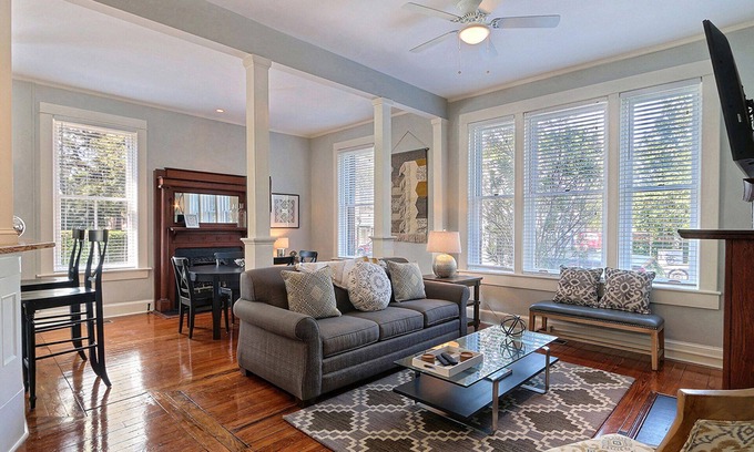 Heated Pool Access | 5*Clean | Flex Cancelation is located in Historic Downtown Savannah. Heated Pool Access | 5*Clean | Flex Cancelation provides accommodation, featuring TV, Security/Safety, Fireplace/Heating, among other amenities. This Apartment features TV, Security/Safety, Fireplace/Heating, to make your stay a comfortable one.