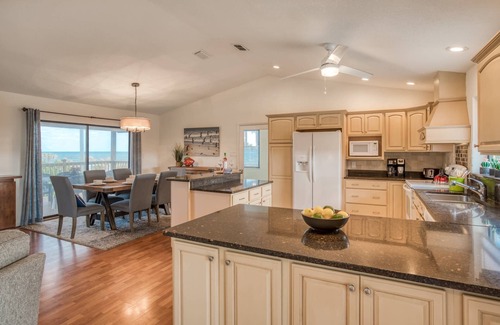 Sunshine Daydream sits just off the Matanzas Inlet, a beloved spot for fishing, paddle-boarding, and windsurfing. Multiple balconies allow you to make the most of the fresh outdoors, taking in ocean breezes, sunrises over the ocean and sunsets over the river while relaxing with family and friends. The split floor plan with three bedrooms, King and two Queen on the 2nd (main) floor, and Queen, Twin Bedroom, and Den Rec room on the lower floor make this house perfect for families or groups. The upstairs space also includes the main living area, gourmet kitchen, and dining, a large deck running the full length of the front of house that looks out over the water, and a rear deck with rockers looking out over the gorgeous trees in the backyard with a peak of the river. The lower level has a Queen bedroom w/rear deck seating area, Twin bunk bedroom, and Den/Gameroom featuring a sofa pullout, large screen tv, game table, Kitchenette, foosball and board games. Wake up to sunrise everyday over the ocean with your cup of coffee enjoying the ocean breezes! The downstairs den is a perfect spot for the kids to hang out and watch a movie or play a game of foosball. The house comes fully stocked with kitchen supplies so that you can cook "at home," along with soft bath and beach towels, and crisp bed linens. Enjoy a number of fine restaurants, plenty of bars, and local attractions, parks, and the beach all within a few minutes' drive.