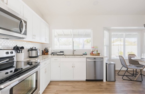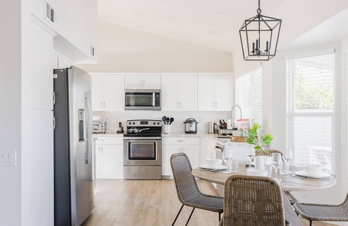 This luxury home boasts all the expected amenities, including ultra-high-speed internet (500 Mbps), five flat-screen TVs with streaming and TV services (Disney+, Netflix, YouTube TV), and a fabulous chef-appointed kitchen with stainless steel appliances. Prepare delicious meals or quick snacks using the well-equipped kitchen, complete with large and small appliances for your convenience.