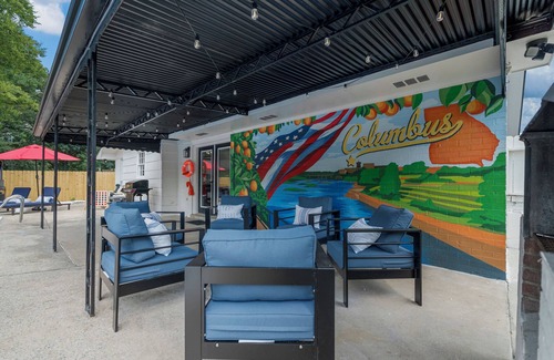 Welcome to The Honor House—your stylish escape in Columbus, GA. This modern 4-bedroom retreat features a private in-ground pool, firepit with cozy seating, game room, and elegant living and dining spaces perfect for relaxing or entertaining. Just minutes from Fort Benning and downtown, you’ll be close to top attractions, restaurants, and nature escapes. Whether you're here for business, leisure, or a bit of both, The Honor House is your welcoming home base.