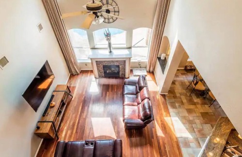 Smart controls, water softener system, completely remodeled and fresh home. Master bedroom has a king size bed with a double shower. Upstairs has 3 bedrooms- 2 with queen beds and one room with 2 twin beds.