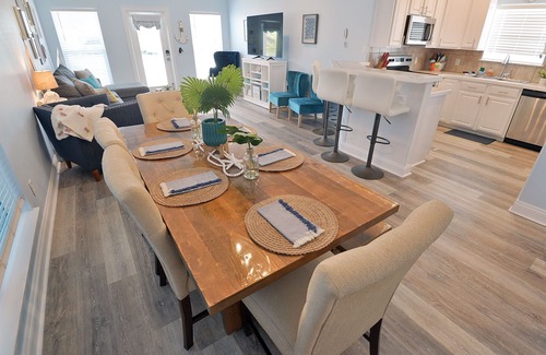 Location! 3 minute walk to the beach with public beach access. Our home has 4 beautifully designed bedroom and 3 full baths. As you walk into the front door you'll see a large open area perfect for entertaining. The living area features a large 65-inch Roku Smart TV.