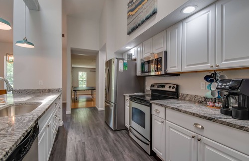 Large, open floor plan features bright walls with updated furniture throughout! Plenty of room and fun for the whole family! Plenty of dining space! 70" smart TV with sound bar in the living room with HUGE, comfortable sectional.