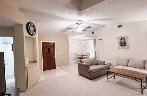 Enjoy this cozy home in a quiet neighborhood with heated salt water pool and hot tub. Over 300 square feet of covered outdoor space with a seating and outdoor dining area. * Short 13 minute drive to the beach and Daytona International Speedway * One hour to Disney *