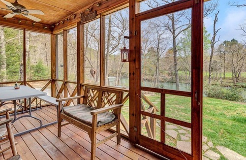 The fully equipped kitchen contains everything you’ll need to cook a gourmet meal, or simply heat up a pizza. Electric stove and oven, dishwasher, microwave, toaster, coffee maker, pots and pans, crock-pot, dishes, utensils, and spices are provided. A large window over the kitchen sink provides views of the creek while you cook or socialize.