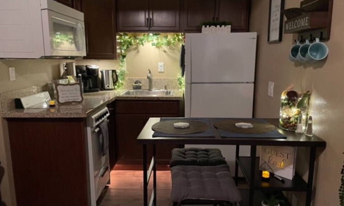 Tastefully put together 1 bedroom/1 bathroom guesthouse in the heart of Corona. This charmer has everything you may need for your stay— whether you're staying for a day or a month; We have it all. Within walking distance to local eateries, convenience shops and a short drive to grocery stores, malls and local entertainment. We strive for 5-star ratings, so we provide 5-star service and accommodations. We welcome you to be our guest and enjoy yourself a little home-away-from-home. Please not that our property just received a new air conditioning unit in both the bedroom and living room areas. There is one remote that controls the air and heat on both units. To operate please be sure to point the remote directly at the unit you’re wishing to operate. Please be sure to return the remote to its holder after usage, if the remote is lost, misplaced or stolen there will be a $200 fine. Thank you for your cooperation and understanding.