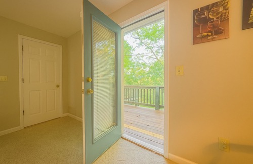 Step out onto your private back deck and enjoy a peaceful wooded view with seating for two — a relaxing retreat after a day of exploring.