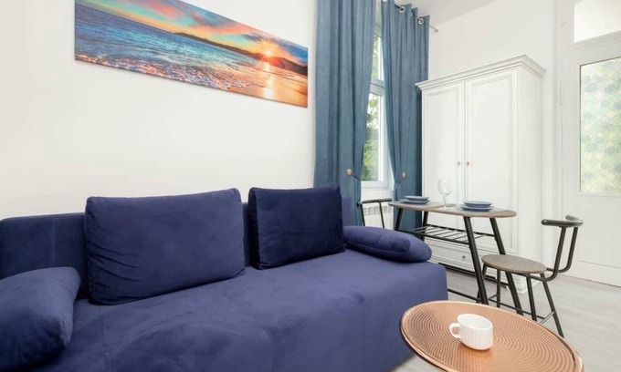 This cosy studio for two people, located on Helska Street in Sopot, is the perfect place to relax by the sea – it is only an 8-minute walk from the beach. The attractive location offers access to numerous tourist attractions, such as a water park and tennis courts. Guests can relax on the furnished veranda with a dining area and also have access to a coffee maker, microwave, electric kettle, refrigerator and a set of towels, bed linen and toiletries. The studio accepts pets, provides outdoor parking, and express self-check-in and the option of issuing a VAT invoice guarantee a comfortable stay.