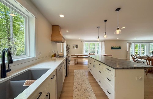 Welcome to The Hemlock Hideaway, a 4,400+ sq ft luxury retreat just 10 minutes from Conway Lake, downtown North Conway, and Cranmore Mountain. This custom home sleeps 16 with 4 oversized bedrooms, 11 beds, and 3.5 high-end bathrooms. Enjoy a grand dining table for 14, a fully equipped kitchen, and a stunning outdoor oasis with a hot tub, deck, grill, and spacious yard. Powered by solar and surrounded by nature, it's perfect for families or groups seeking space, comfort, and style.