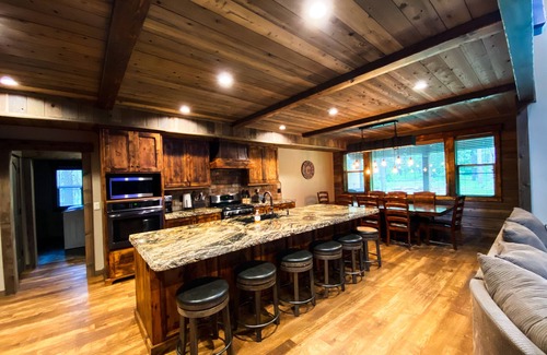 Beautiful new cabin located within walking distance to Henry's Lake Outlet and only a 20 minute drive to West Yellowstone! This gorgeous cabin is beautifully appointed with 6 bedrooms, 5 bathrooms, an open loft, and a game room. The large covered deck is equipped with a BBQ grill, picnic table and a sunk in hot tub perfect for relaxing and soaking up the fresh mountain air. A handful of steps away from the cabin is a fire pit where you won’t want to pass up roasting s’mores under the stars!