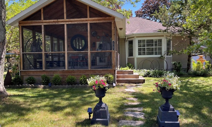 There are 2 bedrooms , one has king bed, the other a queen. A back room off the kitchen has 2 daybeds that acts as an extra living room or bedroom. BBQ area outside with additional seating. Fire pit in side yard . Washer and dryer on site. We want you to feel at home and have tried to supply everything we think you would need! This is a great area to explore! Head to the beach for the day, go hiking thru beautiful wooded trails, go wine tasting or brewery hopping! Lots of U-pick fruit farms, kayaking, biking. This area has it all.