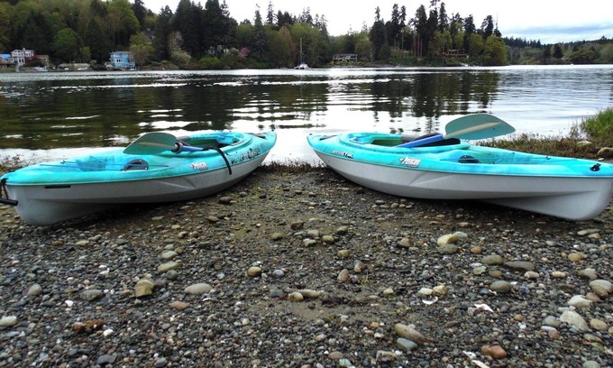 Relax with a good book (take one, leave one library) or a glass of wine down by the peaceful shoreline with its numerous birds and marine life. Our protected section of Eagle Harbor offers complimentary use of kayaks and paddle boards, just don't forget to sign the release before use and bring your own water shoes!