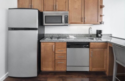 The spacious suite offers air conditioning, a tea and coffee maker, as well as a private bathroom featuring a walk-in shower and a hairdryer. Guests can make meals in the kitchen that is fitted with a stovetop, a refrigerator, a dishwasher and kitchenware. The suite features parquet floors, a seating area with a flat-screen TV with cable channels, a wardrobe, a sofa, as well as a carpeted floor.