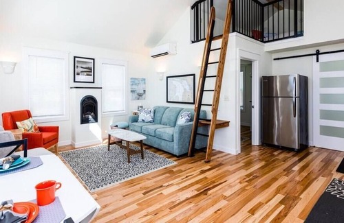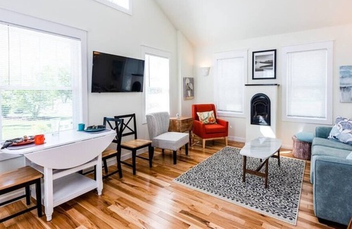 This cottage has A/C, queen size master bed, sleeper sofa, XL twin bed, fireplace (just for looks/non-functioning), bedding, cooking utensils, dishes, pot/pans , R/O water, microwave, dishwasher, range. The heat source is a Mini-Split (a/c & heat).