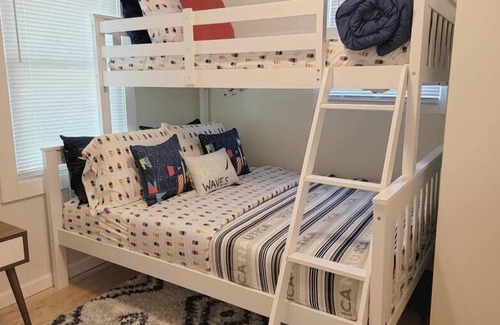 This cottage has A/C, queen size master bed, bunk bed (full on bottom and twin on top), bedding, cooking utensils, dishes, pot/pans , R/O water, microwave, dishwasher, range.