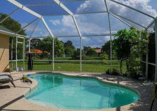Featuring a garden, Heron's Nest provides accommodations in Port Saint Lucie. This property offers a private pool, free Wifi, and free private parking. Outdoor seating is also available at the vacation home. Leading onto a patio with pool views, the spacious air-conditioned vacation home consists of 1 bedroom. Providing a terrace with lake views, this vacation home also provides guests with a satellite flat-screen TV, a well-equipped kitchen with a dishwasher, an oven, and a microwave, as well as 3 bathrooms with a walk-in shower and a hair dryer. This vacation home is allergy-free and non-smoking. Golfing, cycling, and fishing are possible within the area, and Heron's Nest offers a private beach area. Fort Pierce City Marina is 13 miles from the accommodation, while Fort Pierce Inlet State Park is 17 miles away. Witham Field Airport is 10 miles from the property.