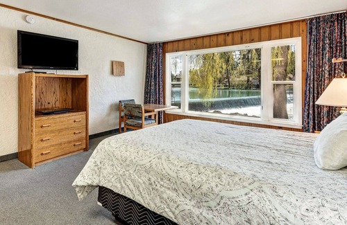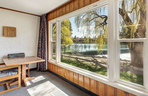 Don't let the classic furnishings deter you. This is a special little space unlike any other places in Bend. Not only are you feet from the river, but you're within a 12-15 minute walk into the heart of downtown Bend. The unit features a heat pump that will keep you warm in the winter, and cool with AC in the summer. The kitchenette features a microwave and mini-fridge. This is one of the rare pet-friendly units at Bend Riverside. You're welcome to bring up to two pets, so long as you pay the one-time $50 pet fee (per pet, plus tax).