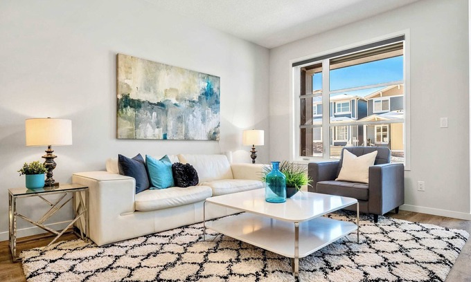 Looking for a spacious getaway in Calgary? Our 4-bedroom home (with 6 beds) comfortably fits up to 11 guests. It includes 1 king bed, 3 queen beds, a queen pull-out sofa, a single bed (bunk bed) and a kids' pack 'n play crib. Cook in our stocked kitchen, relax in our cozy living space with a smart TV or take advantage of our great location – just 13 mins from the YYC airport and 20 mins to downtown Calgary.