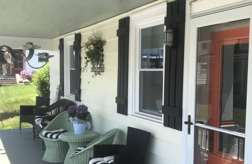 French Country Decor. Old Country Charm with modern amenities and cozy comfort. Home built in the 1800's. This fantastic blast of the past, mixed with the comfort and beauty of the present. Enclosed Pet Yard! Dog Friendly. It's a must have for all ages. Recently updated for our guest's comfort and pleasure, while keeping the old-time charm. Great for any couple to a large family get together. Explore, relax, and lounge. Kickback in your own private sitting. Great place to hang out on rainy days, or sunny days to play bocce ball, yard games, beer pong, dice, poker table and chips, play cards, roast marshmallows. Country style fire pit in the back yard with a view of forest, creek, & mountains. Great for a relaxing evening around a crackling fire. Enjoy sitting on the old town front porch watching the people pass by or retreat to the private secluded back yard. Check out the old carriage-house with the general store sign.