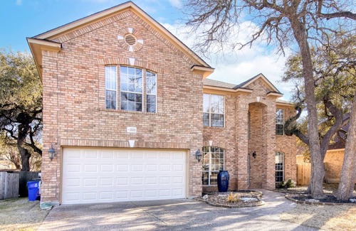 Welcome to your home away from home in Cedar Park, Texas! This spacious 5-bedroom house offers comfort, convenience, and plenty of room for your group to relax and unwind. The master bedroom boasts a luxurious king-sized bed, offering a peaceful retreat after a long day of exploring the area. For added convenience, there's another bedroom on the lower level with its own bathroom and a queen bed, perfect for guests who prefer a bit more privacy. Upstairs, you'll find three more bedrooms, two with queen beds and one with two twin beds, ensuring everyone has their own comfortable space to rest. The front-facing bedroom even has a dedicated workspace!