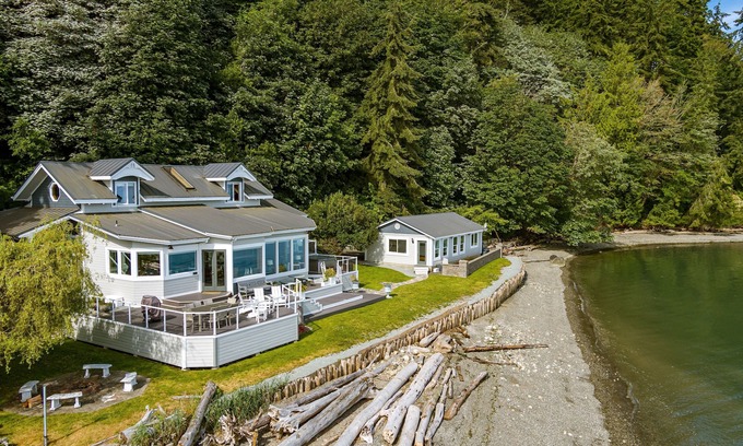 Take it easy at this unique and tranquil getaway. Over 400 feet of private beachfront and 180-degree panoramic views over the calm saltwater of Saratoga Passage. A remarkable find, a sanctuary to restore and relax.