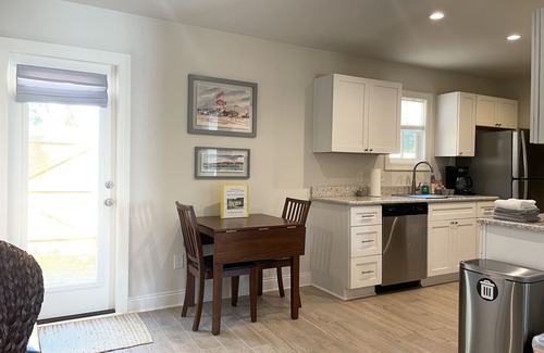 The Cottage has one bedroom with a generous walk-in closet and one full en suite bathroom. An additional queen sleeper sofa with a memory foam mattress is in the living room. A dining table with room for 4, a full kitchen, and large laundry room (new washer & dryer in 2024) offer everything you need for a comfortable stay!