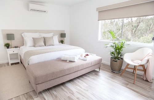 We offer a brand new fully self contained lodge in the country with 2 bedrooms sleeping 6. Whether your looking for an express overnight stay or a country weekend away we can accommodate you. Situated just 45 minutes from Melbourne Airport, 55 minutes from Melbourne CBD, 2 minutes from Broadford’s State Motorcycle Complex, 2.5 minuets Hume Fwy, 3.5 minutes Broadford Township, 10 minutes base of Tallarook ranges. With a fully equipped kitchen you’ll have everything you need to cook your meals, WIFI, Netflix and a spa bath.