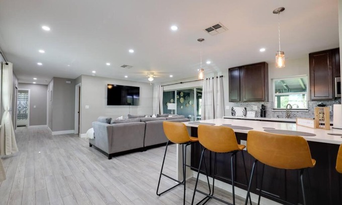 This Hidden gem home w an exhilarating backyard view in Deltona is well equipped and has all facilities that have been listed below. Please note that these details were shared to us by booking.com for the listed “Hidden gem home w an exhilarating backyard view”. We solely rely on their shared details and are regarded as “accurate”. If you have any concerns about the information or accuracy describing this House, please let us know.