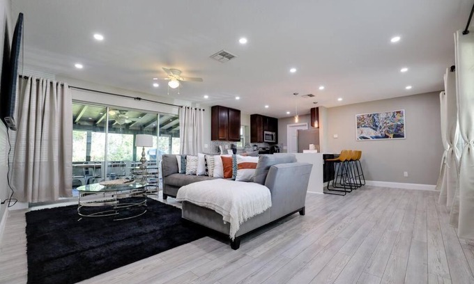 Featuring pool views, Hidden gem home w/ an exhilarating backyard view provides accommodation with an outdoor swimming pool and a balcony, around 41 km from Daytona International Speedway. This holiday home features a private pool, a garden and free private parking. This air-conditioned holiday home comes with 3 bedrooms, a flat-screen TV, and a kitchen with a fridge and an oven. Towels and bed linen are featured in the holiday home. Church Street Station is 46 km from the holiday home, while Amway Center is 47 km away. The nearest airport is Orlando Sanford International Airport, 24 km from Hidden gem home w/ an exhilarating backyard view.