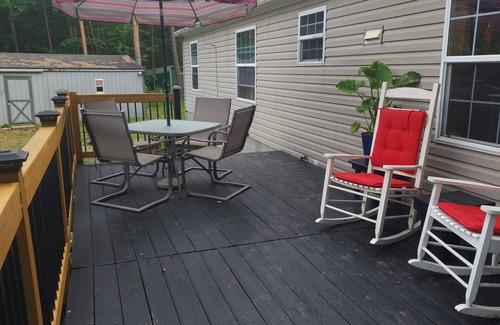 Step outside onto the expansive deck and immerse yourself in nature's embrace. Take a leisurely stroll through the forest trails, indulge in a morning yoga session, or simply relax in the sun-drenched seating area. The surrounding woods provide a sense of seclusion and tranquility, making this the perfect retreat for nature lovers and those seeking respite from the hustle and bustle of everyday life.