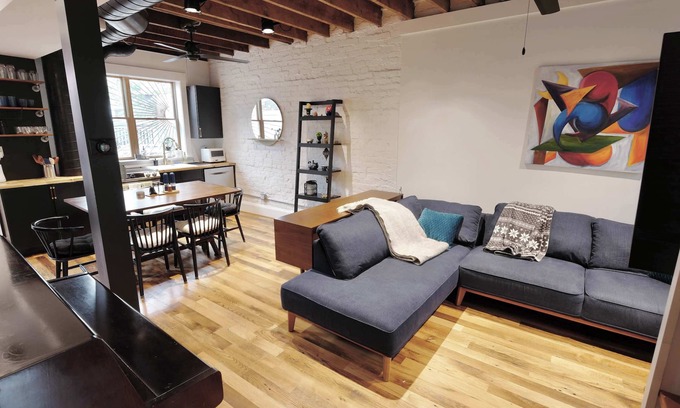 This beautiful home nestled in a lively DC neighbourhood. Unwind on the front porch surrounded by lush greenery, soak in our vintage claw-foot tub, or lay back in our master bed with beautiful vaulted ceilings after a day exploring the wonders of DC. Enjoy your favourite meals or coffee in our fully equipped, full-sized kitchen. Relax and watch a movie on the smart TV in the living room, where the sofa conveniently converts into a queen-sized sofa bed. For those needing to catch up on work or emails, benefit from a separate basement space with a sofa, sofa bed, and laptop-friendly desk. This home has so much to offer.