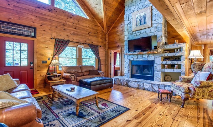 Best-rates for the Maggie Valley cabin starts from $250 per night with includes Parking, Security/Safety, Spa, Hot Tub, Internet, Air Conditioner, TV, EV Charge Station, Fireplace/Heating, Barbecue/Outdoor Cooking, Child Friendly, Laundry, Sports/Activities, Kitchen, Pool, Entertainment StayAndPlay offers fully equipped golf villas, golf hotels, golf resorts, luxury golf cabins, and exclusive golf retreats, making it easier than ever to find your perfect golf escape — ideal for families, peaceful getaways, or pet-friendly retreats with the whole crew.