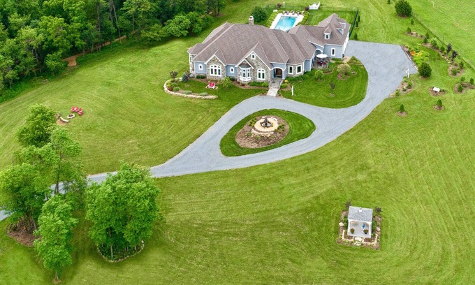 A licensed, luxury, lodging property located in DC’s Wine Country of Loudoun County, VA. This modern estate sits on 10-acres of beautifully landscaped grounds with amazing panaromic views of the Blue Ridge Mountains, the valley between the hills, and the neighboring farm and vineyard. The manor offers 5-guest room suites each with private ensuite bathrooms, as well as many social spaces, and private places in and around the property to unwind, relax, and enjoy.
