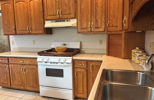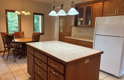 The hideaway is tucked away on a dead-end, sitting on bluff overlooking the Ohio River. Large house with two living areas & bonus lounge room and sunroom; master suite complete with a jacuzzi tub in the ensuite, and three other bedrooms with their own attached bathroom, a well as a kids room with loft bed, and a hall half bath. Hideaway has a large eat in kitchen with a separate dining room, making it the perfect rental for family gatherings and holidays.