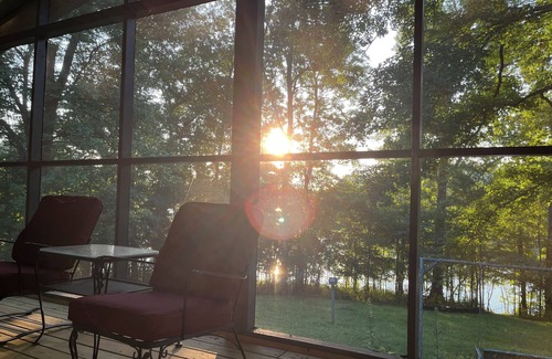 Cozy retreat for the perfect family vacation. Quiet and secluded on a semi-private road, this 2700 square foot, mid-century stone house on a 1 acre waterfront lot with 4 beds and 3.5 baths that sleep 11 comfortably. A natural park-like setting overlooking the water from a huge deck and screen porch, with fire pit too. Less than 5 minutes from Rough River Dam national Park and boat ramp where you can depart for your fishing trip or relax by the lake and unwind. Close by shops and restaurants.. We're happy to assist with any questions while you stay at our house.