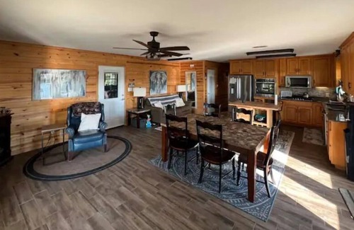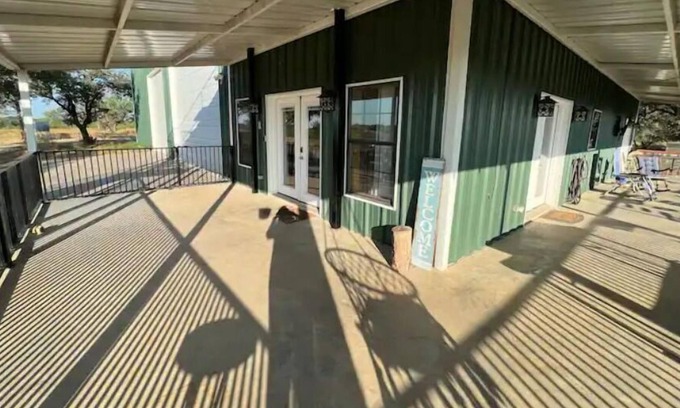 Come rest at The Hideaway after a self guided tour of Main Street, a day out at Possum Kingdom Lake, or a quick shut eye before a fishing tournament at Hubbard Creek Lake. This barndominium has everything you need to get away and relax for a while. You'll love this unique escape! Catch and release farm tank, beautiful sun rise & sun sets, and additional pens that you can stall your horses for horseback riding on the ranch. Bring your 4 wheeler or just come to relax and be romantic!