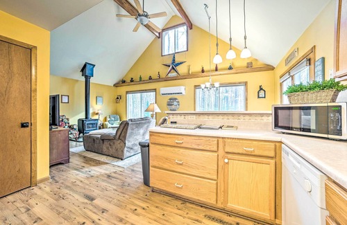 Book a stay at this Roscommon vacation rental for a retreat filled with fresh air and sunshine! Nestled in the forest less than 1 mile from Higgins Lake, this quaint cottage invites you to take a true escape from everyday life. Enjoy all the comforts of home in this space, offering 2 bedrooms, 2 bathrooms, and a full kitchen. After a day lounging on the beach at Higgins Lake State Park or riding the snowmobile trails, come home to gather around the fire pit and dine out on the deck!