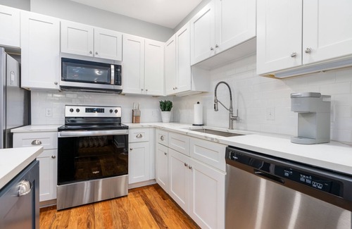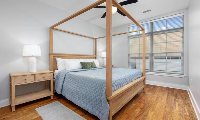 This set-up comfortably sleeps up to 4 guests. Traveling with a larger group and need more space? We manage all 11 short term rentals in the building. Message us to ask for more details!