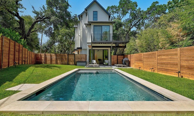 Welcome to beautiful Sultana in the heart of Tarrytown, less than 2 miles west of Downtown, Zilker Park, the University of Texas, and the State Capitol. Swim in the private pool, relax in the manicured backyard, stroll the beautiful tree-lined neighborhood, or hop in a rideshare to enjoy downtown Austin. Masterfully designed new construction and modern luxury are embodied throughout this gorgeous Tarrytown Treehouse. The home has 3 Bedrooms + 3.5 Bathrooms and can sleep up to 10 guests, perfect for family getaways and business travelers. The answer to modern living is revealed room by room, evoking a sense of excitement, elegance, and glamor. Located within walking distance to the new Cafe Medici at Windsor and Winsted—minutes to retailers, restaurants, and nightlife. Hop on the West Enfield Greenbelt and ride your bike to the Ladybird Lake Bike Trail. You'll book next year's trip before you leave once you've experienced Sultana!