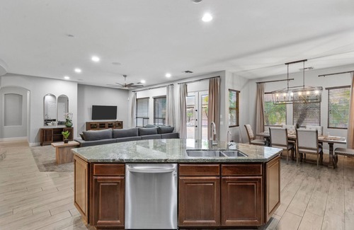 High End Home w/Heated & Cooled Pool, Fire Pit, Game Room and Golf Nearby is located in Chandler. High End Home w/Heated & Cooled Pool, Fire Pit, Game Room and Golf Nearby provides accommodation, featuring Wellness Facilities, Barbecue/Outdoor Cooking, Laundry, among other amenities. This House features Wellness Facilities, Barbecue/Outdoor Cooking, Laundry, to make your stay a comfortable one.