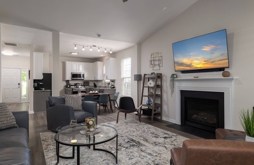 This stunning 5 bedroom home was designed for gatherings! Whether traveling with family and friends, on business, or youth sports team, your group will love the ability to spread out & enjoy multiple seating and hangout areas plus a fenced-in backyard for the pups! 2 King & 1 Queen bedroom are located on the main level, plus 1 Queen & 1 Twins bedroom upstairs with a cozy loft. Our central location means you'll have easy access to both High Point & Greensboro businesses, attractions, and venues!