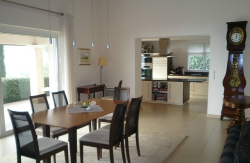 With 150 m² of air-conditioned living space, the alarm-protected house on the ground floor has a spacious living and dining area with satellite TV and WiFi, as well as an open, very well-equipped kitchen (induction hob - oven - microwave - refrigerator - dishwasher - wine fridge) and direct access to a large, covered terrace.