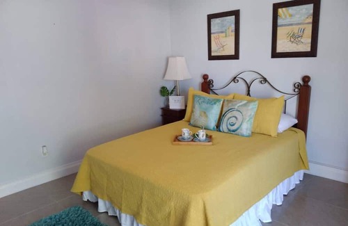 High Rock Oasis, is a charming master suite containing a cozy Queen bed with a private ensuite. Perfect space for a couple. The unit is equipped with A/C, television, Coffee maker, microwave and free WIFI. There is no need to travel far, there is a convenience store located on property, the beach is only a 3 minute walk and our fishing boat is available for daily rental.